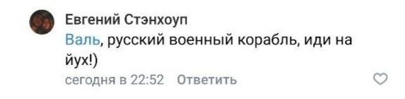 Я, русский военный корабль, хуемае (дикари хохляцкие реально верят, что так обращаются вояки)