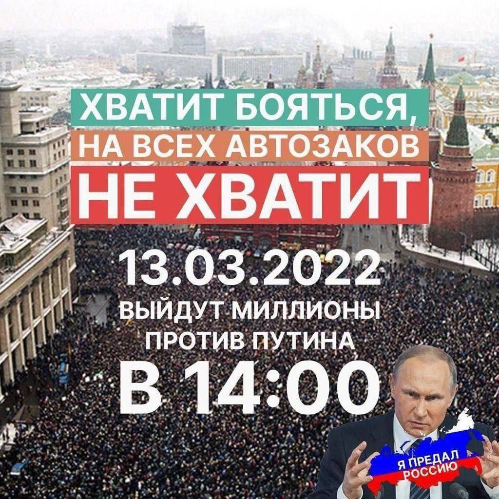 Российская оппозиция объявила на сегодня в 14:00 антивоенные и антипутинские акции