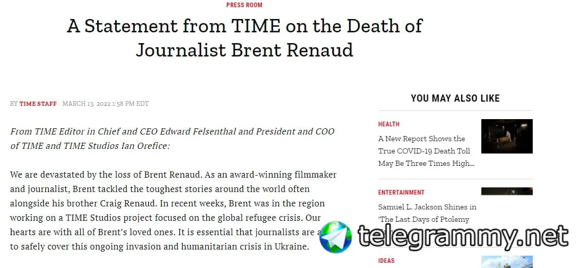 ⚡️В американском издании Time сообщили, что погибший в Ирпене американский журналист Брент Рено работал на них.