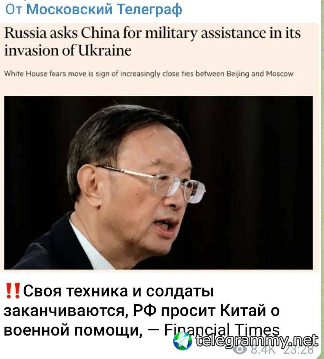 ⚡️⚡️Своя техника и солдаты заканчиваются, РФ просит Китай о военной помощи, - Financial Times