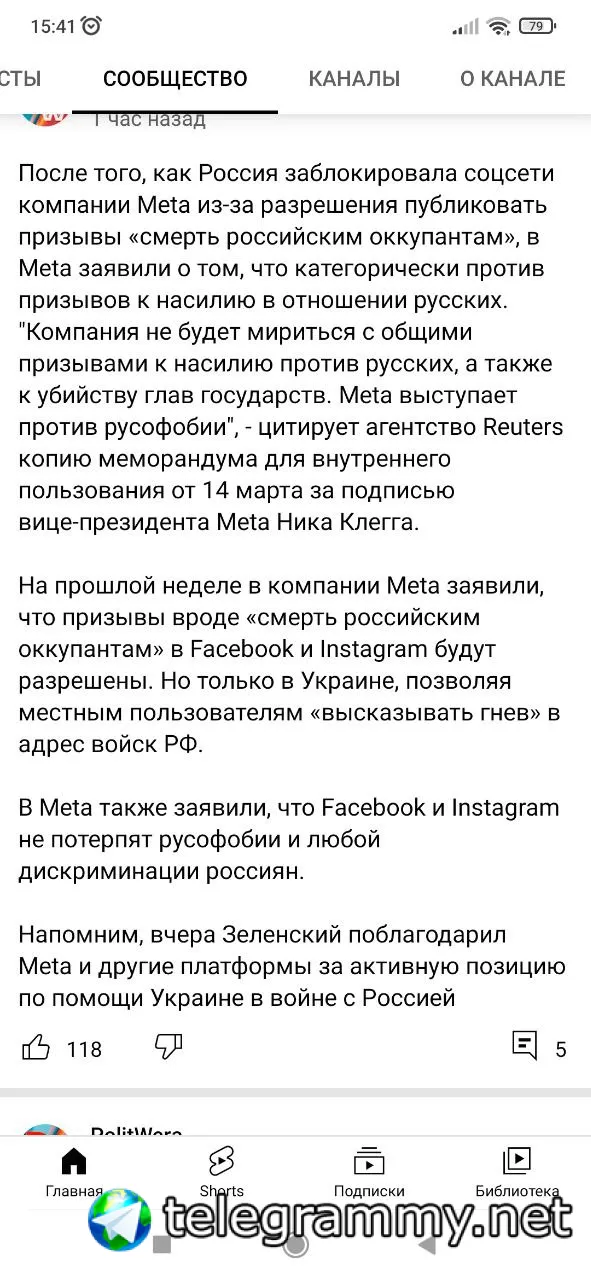 ⚡️Роскомнадзор потребовал от Google немедленно восстановить доступ к каналам Гостелерадиофонда в YouTube.