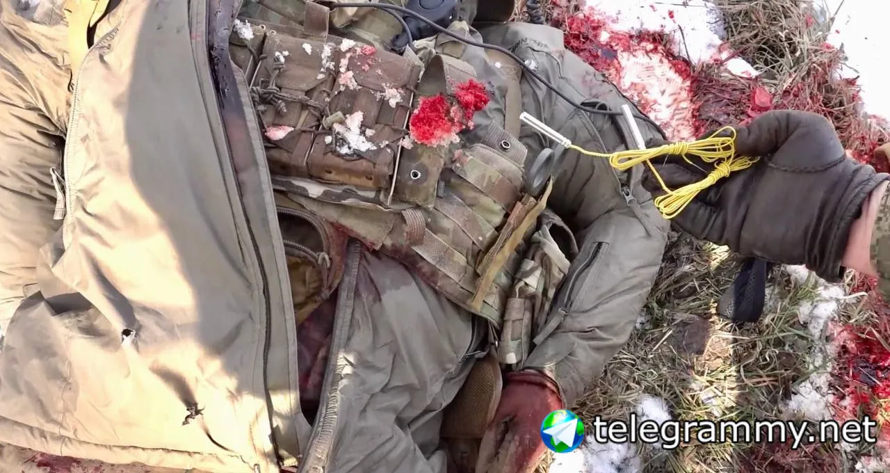 Укронац ссыт на труп Русского солдата и снимает это на видео.