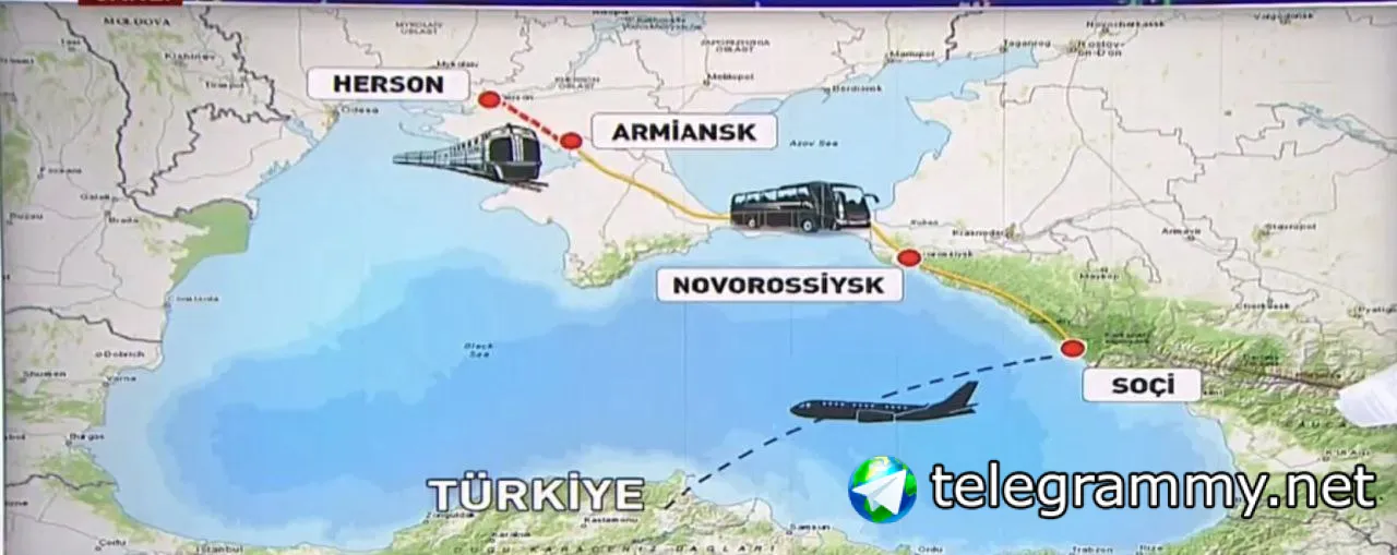 Путь эвакуации турецких граждан из Херсона: бронепоездом до Армянска — автобусом до Новороссийска (автобусы сопровождала бронетехника Минобороны России; турок доставили в генконсульство) — автобусом до Сочи — самолётом THY в Турцию.