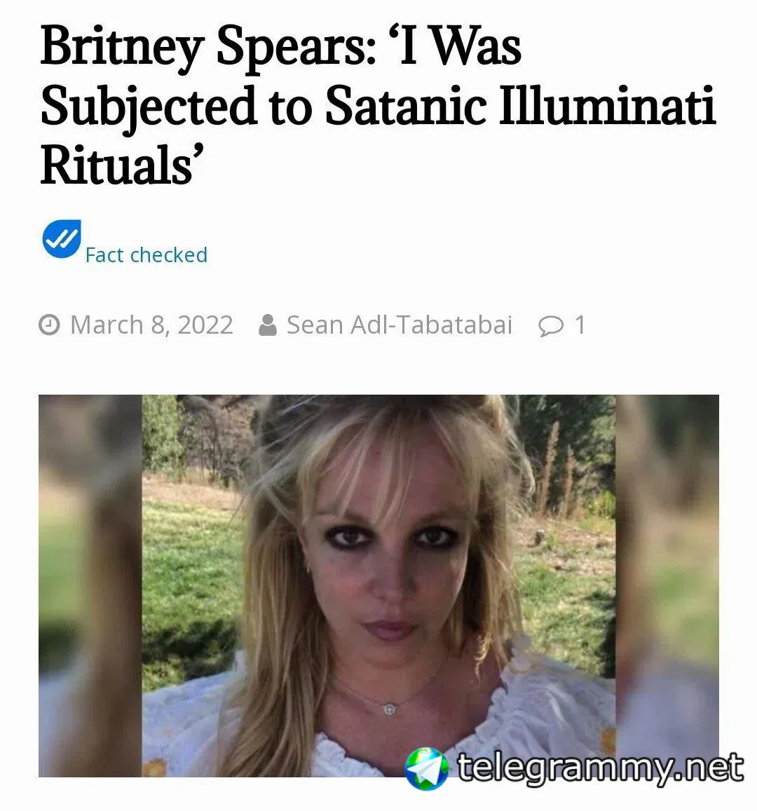 Спирс подробно рассказала о «сатанинском» насилии, которому её подвергали опекуны-иллюминаты в течение 13 лет. Это включало отвратительные сексуальные ритуалы, еженедельные переливания крови и эксперименты в рамках МК-ULTRA.