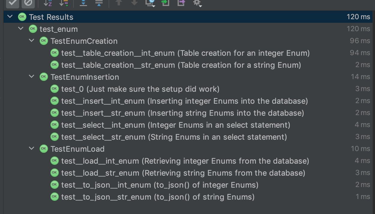 But it would be really great if that could be supported by Pony, that automatically would validate values when reading and writing them to the database, and using real enums would be the pythonic way.