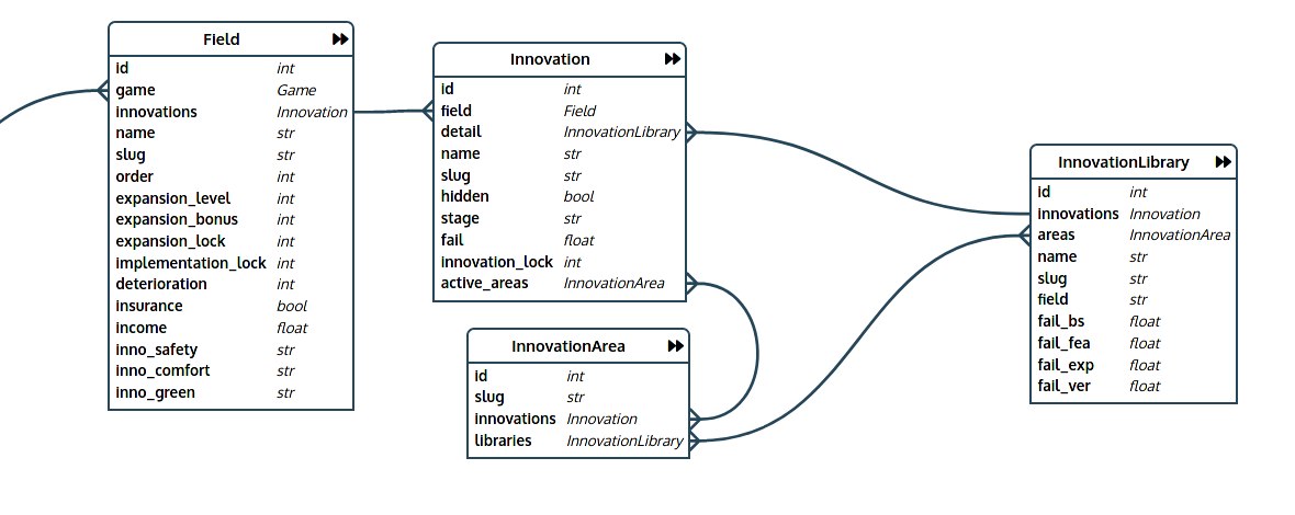 I'm coming from game.fields (to the left of the screenshot) and trying to find out how many distinct active_areas there are across all innovations in a field.