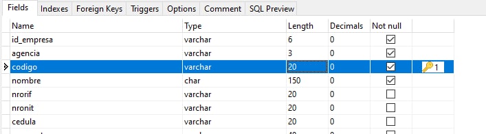I mean codigo column in Articulo table