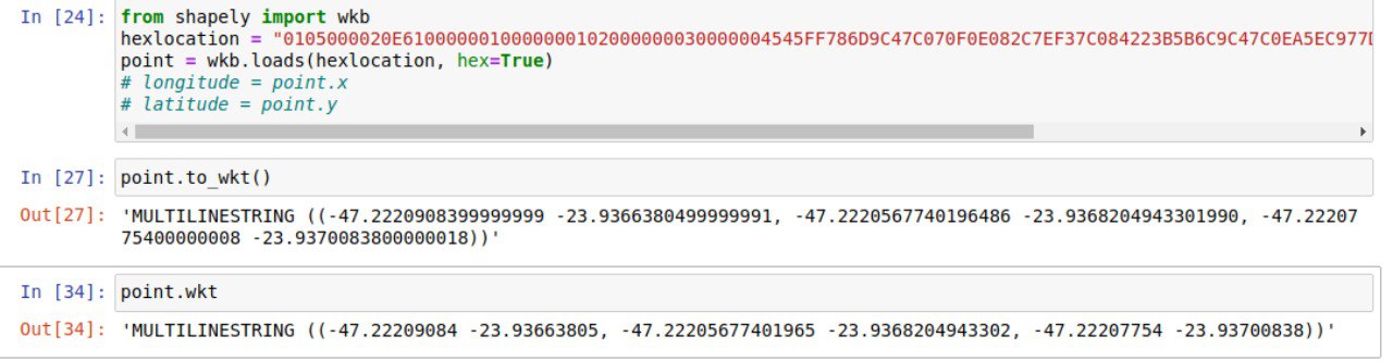 the data comes in hex format... so I used the Shapely lib to generate the MULTILINESTRING