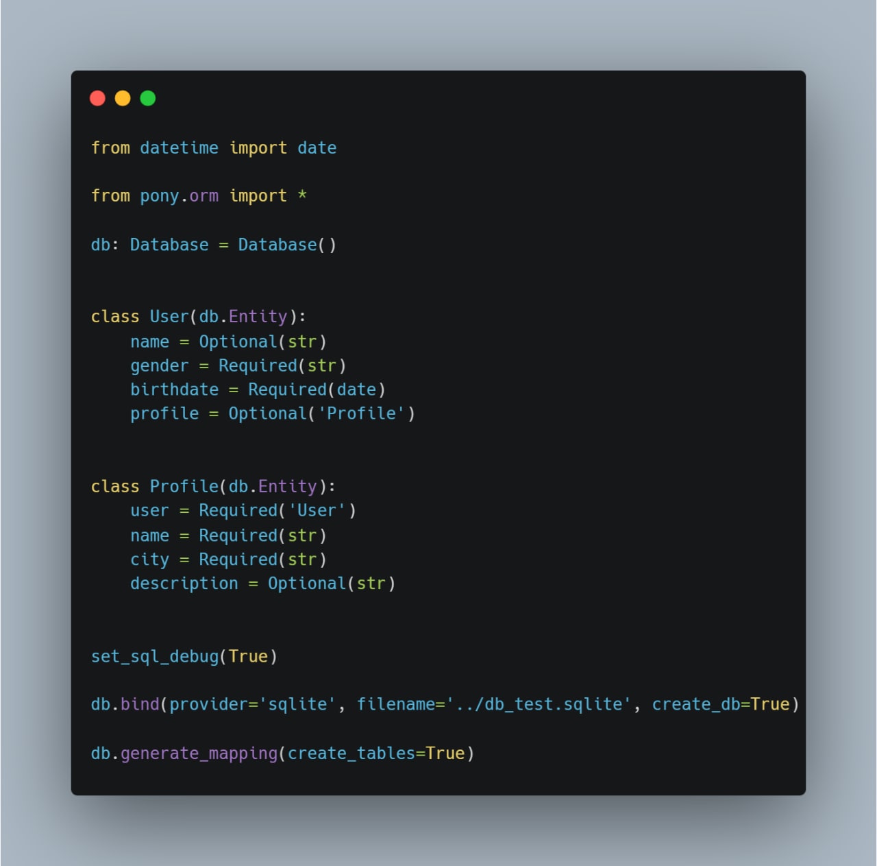 user = Required(str)