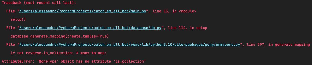 that's the traceback I get. What really puzzles me is that model.get(id=1) returns None and that orm.select(o for o in model)[:] is empty on the line right before I do model(**x)