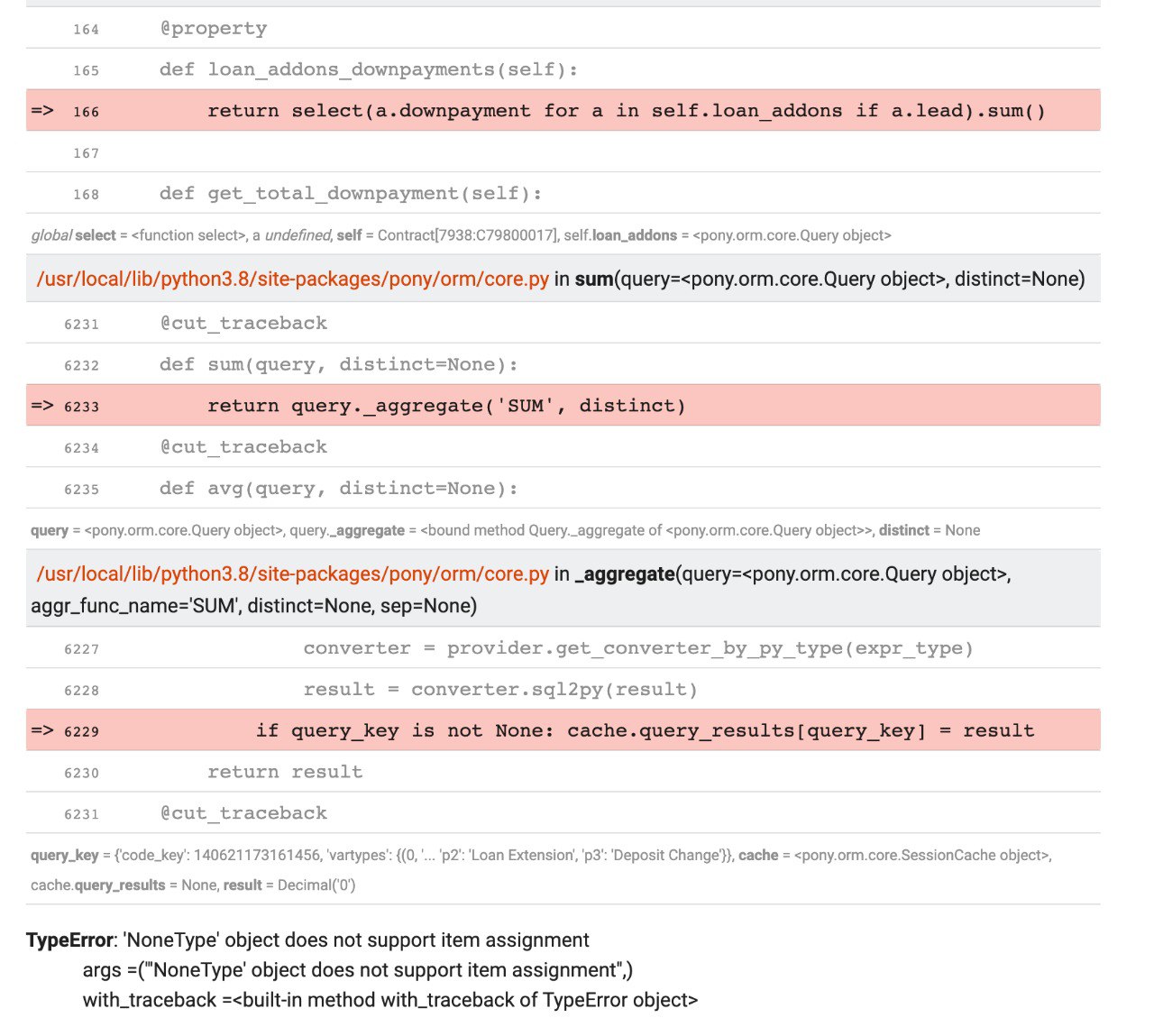 i get the error: pony.orm.core.TransactionError: An attempt to mix objects belonging to different transactions