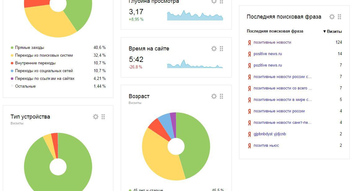 Доброй ночи, взялась чуть чуть за свой Позитивный сайт ) Пока мне было не до него, выскочил на 2 строку в Яше по "Позитивные новости" - запрос мелковат, но мне интересен.