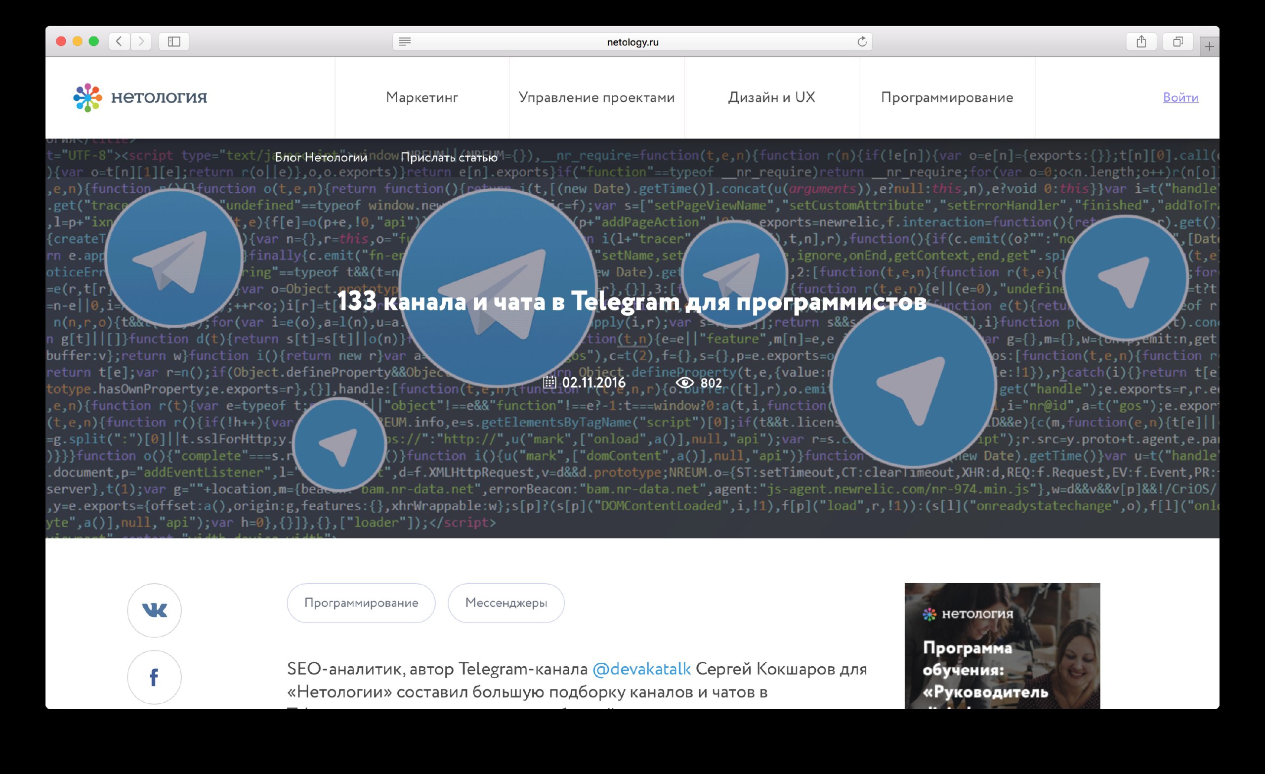 Большая коллекция из 133 каналов и чатов в телеграме для программистов — http://amp.gs/TaAk
