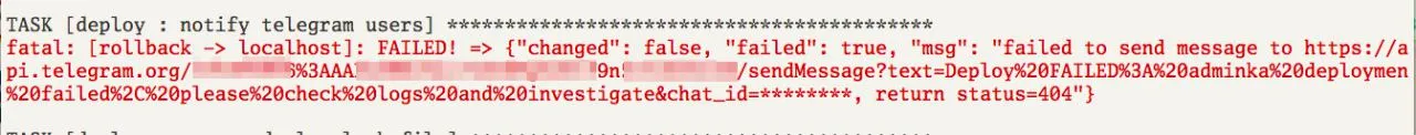 https://api.telegram.org/pretty-valid-token/sendMessage?text=Deploy%20FAILED%3A%20adminka%20deploymen%20failed%2C%20please%20check%20logs%20and%20investigate&chat_id=********