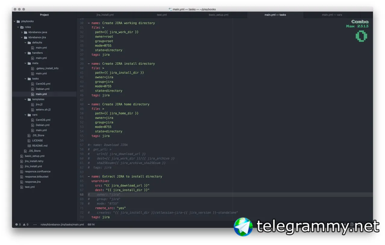 заметил, что когда открываю общий файл плейбука, атом ложится :))