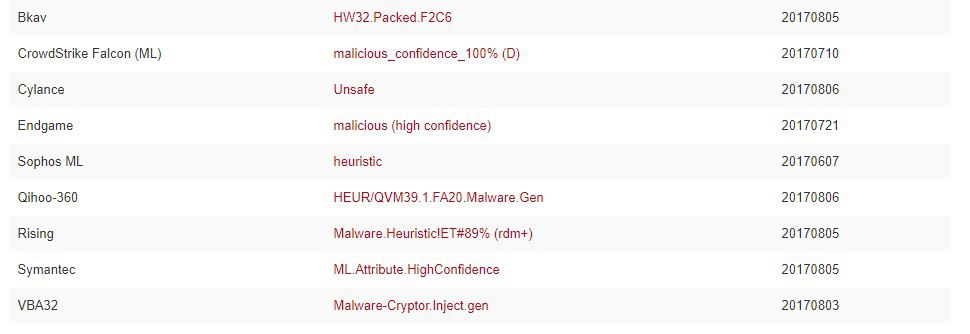 Symantec ML.Attribute.HighConfidence 20170805