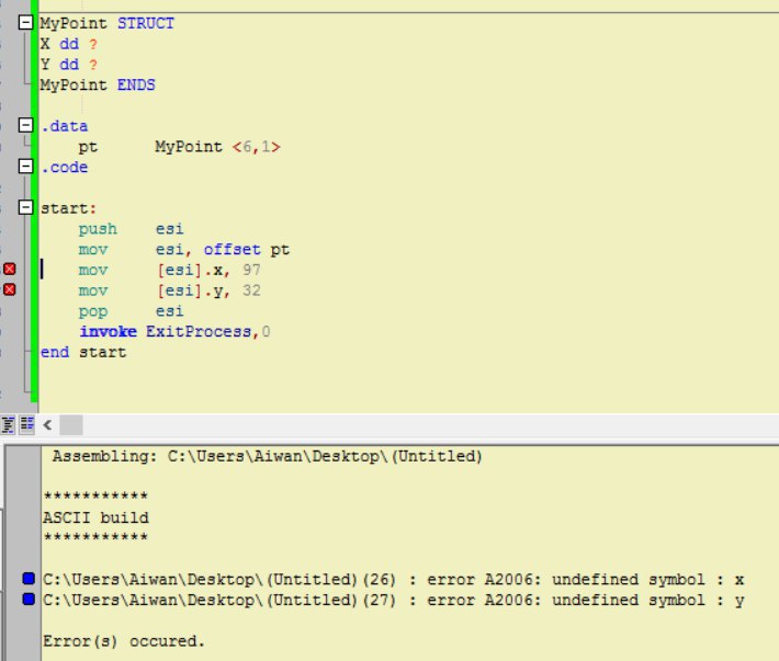 А имя структуры указывать не надо? В транскрипции Tasm звучало бы так: mov [esi+pt.y], 97