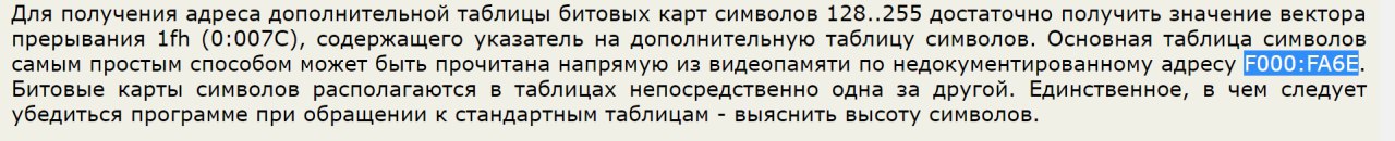 mov dx,es ;dx:ax адресс таблицы ASCII BIOS