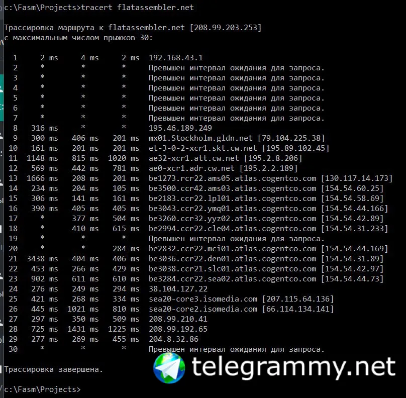 Обмен пакетами с flatassembler.net [208.99.203.253] с 32 байтами данных: