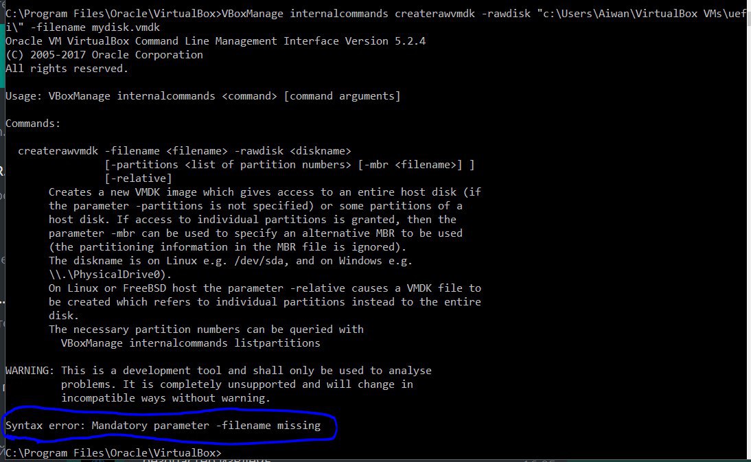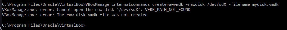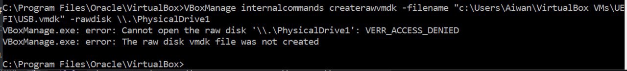 VBoxManage internalcommands createrawvmdk -filename "C: \ Users \ vhudson \ VirtualBox VMs \ usb.vmdk" -rawdisk \\. \ PhysicalDrive1