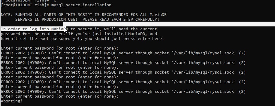 но у меня пока что он упал на этапе mysql_secure_installation