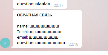ОБРАТНАЯ СВЯЗЬ name: ваі Телефон: віав email: іавіа question: віавіав