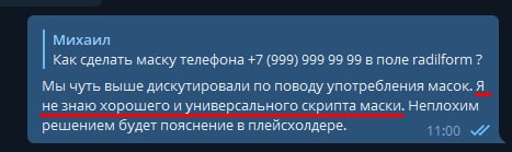 Как сделать маску телефона +7 (999) 999 99 99 в поле radilform ?