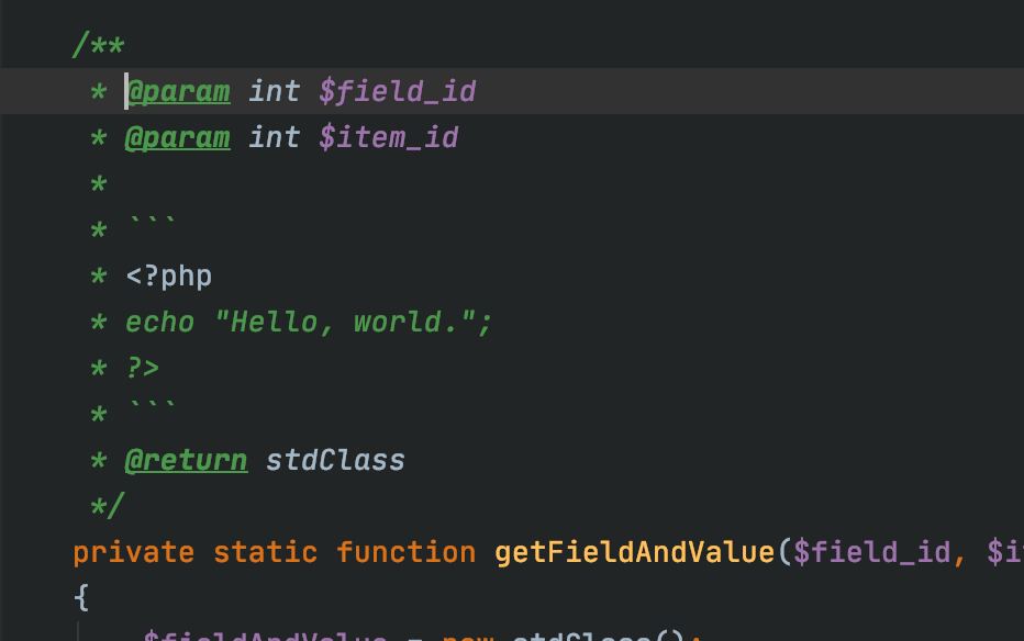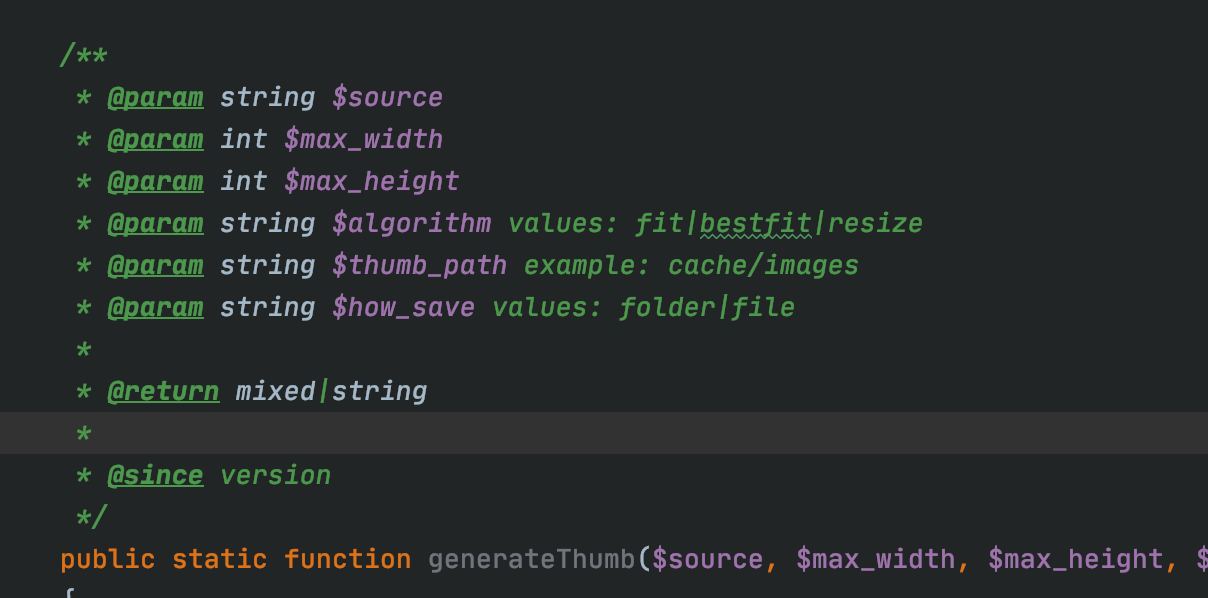 @Septdir а участки кода как вставляешь в phpdoc?