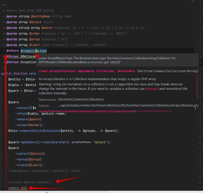 и psalm сразу подчёткивает если типизация нарушена