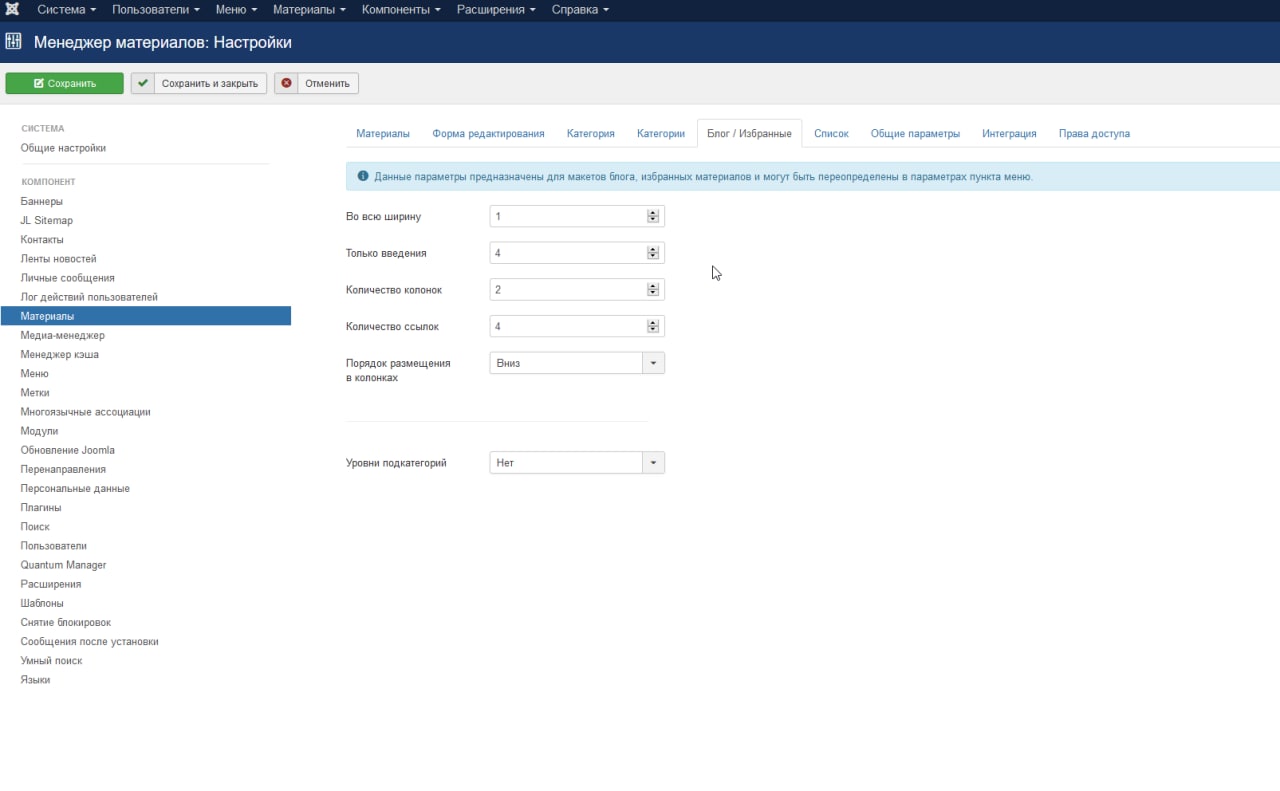 Ну вот прямо там. В настройках Менеджера материалов, на вкладке Блога. Как это так...