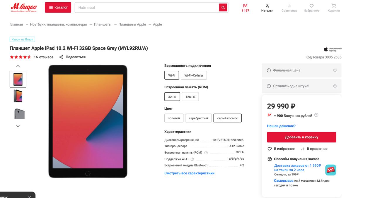 Планшет APPLE iPad 2020 128Gb Wi-Fi MYLE2RU/A, 128GB, iOS серебристый
