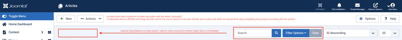 даааа... к админке J4 надо привыкать. неудобно работать без верхнего меню и они зачем-то тулбар сложили в список. лишний клик делать нужно