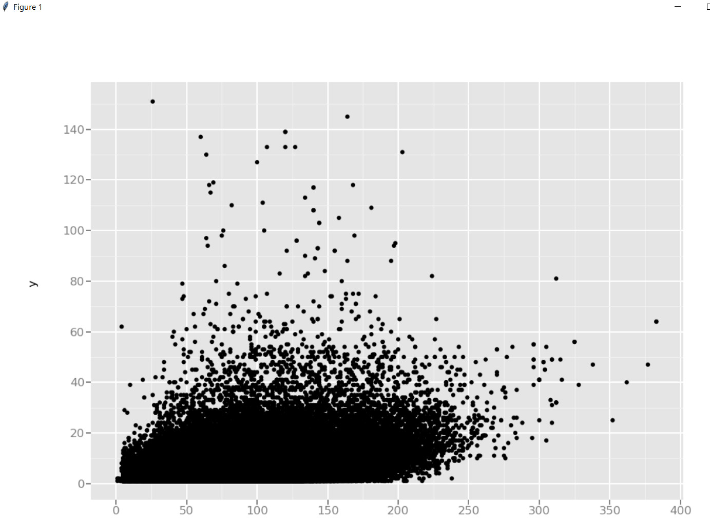 Задача по прогнозной модели -- дан список из более 100.000 значений "категория регион время_фото время_публикации id_автора лайки просмотры число_комментариев", требуется применить любую прогнозную модель и предсказать число лайков на будущих фото, решил попробовать линейную регрессию на столбцах "время_публикации лайки просмотры число_комментариев", получил такую зависимость функции от, например, числа лайков, кто-то знает, как трактовать результат? это вроде даже не функция