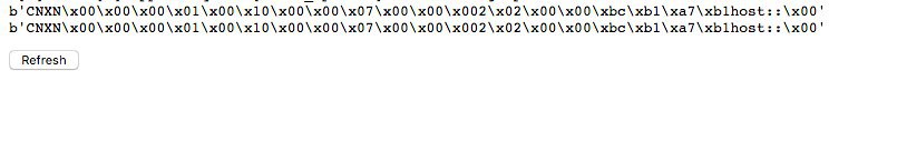 Примерно такого типа "b'CNXN\x00\x00\x00\x01\x00\x10\x00\x00\x07\x00\x00\x002\x02\x00\x00\xbc\xb1\xa7\xb1host::\x00'"