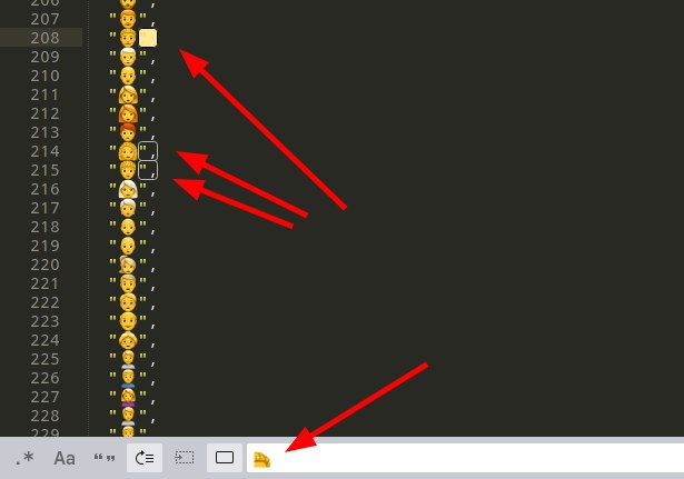 А когда искал в датасете эмодзи в Sublime Text, поиск вовсе сломался 😂