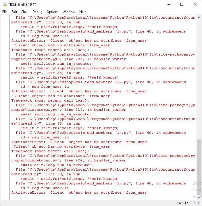 Из за чего может вылезти ошибка PEER_ID_INVALID