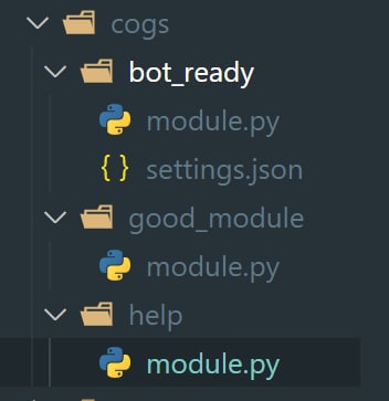 Всем привет, нужна помощь, есть вот такая архитектура модулей. Нужно в файлик module.py в папке help импортировать словари из всех файликов module.py остальных папок. Нельзя привязываться к названиям папок