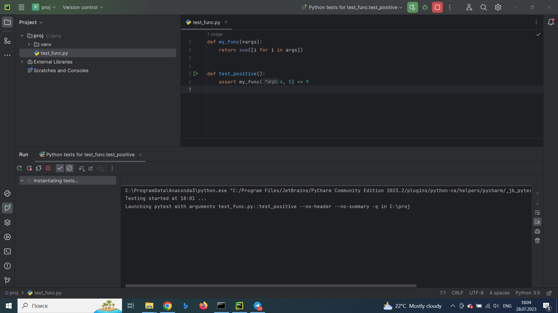 Подскажите, пожалуйста, почему тест не запускается?