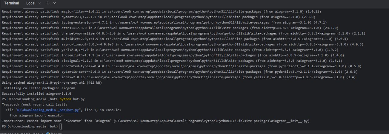 Что за фигня с библиотекой aiogram? Установил версию 3.1.0, но почему-то executor не видно. У меня есть другой бот с такой же установленной версией, но он работает. Пробовал удалять venv, заново создавать и устанавливать aiogram 3.1.0