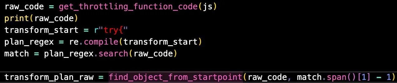 search возвращает None потому что в raw_code нет никакого try (убрали)