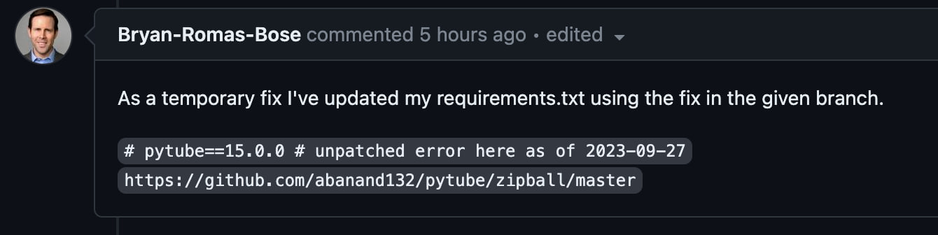 открываешь https://github.com/pytube/pytube/issues/1799 и листаешь вниз