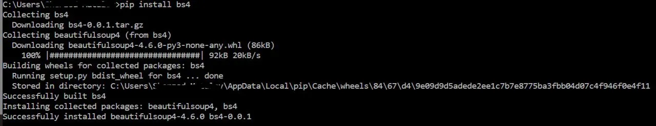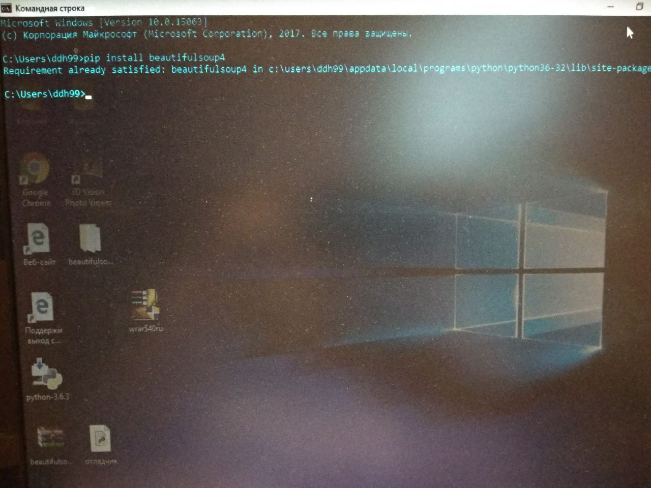 Привет, подскажите как на Винду 10 установить bs4 при помощи pip?