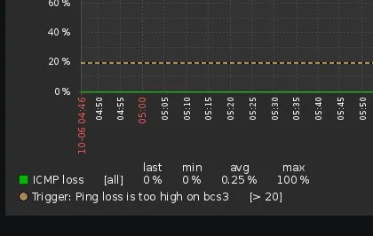 господа товарищи,подскажите есть там темплейт icmp. в нем есть icmp response time. дергается раз в минуту. получает numeric (float). юниты типа s. на графике я вижу так: https://i.imgur.com/GTsueLB.png . триггер выглядит так: {Template ICMP Ping:icmppingsec.last()}>0.02 и 0.2 я пробовал. что я делаю не так? почему у меня не видно триггера на графике?