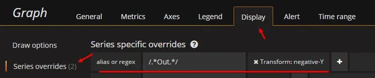 У меня вопрос к людям, пользующимся графаной. Кто делал "зеркальные" графики, т.е. есть 2 элемента данных входящий и исходящий трафик. Для одного из элементов надо инвертировать ось Х чтобы удобно было смотреть т.о. 0 будет где-то посередине. Видел скриншоты, но не пойму как сделать