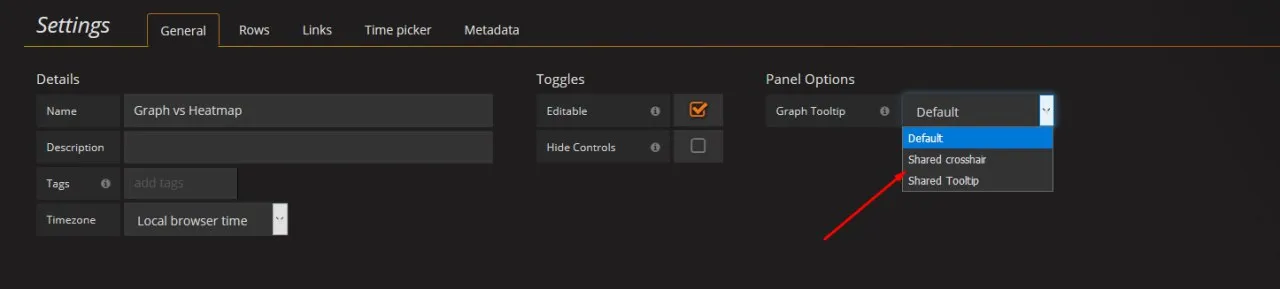 есть вот тут http://play.grafana-zabbix.org/dashboard/db/graph-vs-heatmap?orgId=2 но никак не могу найти где настройка связи их