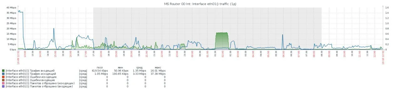 Доброго дня! народ, подскажите новичку как монитооить нагрузку на роутере (микрот)? хочется видеть хорошо ли бегает трафик между роутером и провом