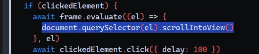 Нет, ты используешь нативный метод самого JS и применяешь его внутри evaluate. А тут тебе удобная обёртка. Достаточно просто await el.scrollIntoView();.