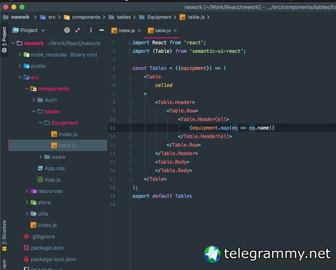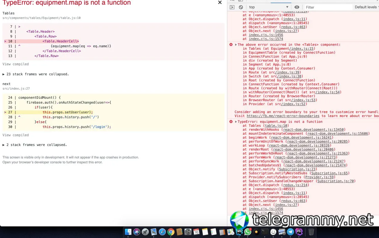 у тебя в equipment объект, у объекта нет метода map
