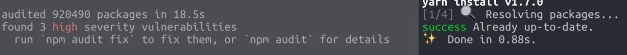 У меня проект был на первой работе который через npm не собирался, а через yarn собирался, лол