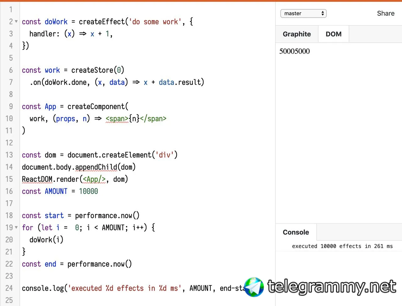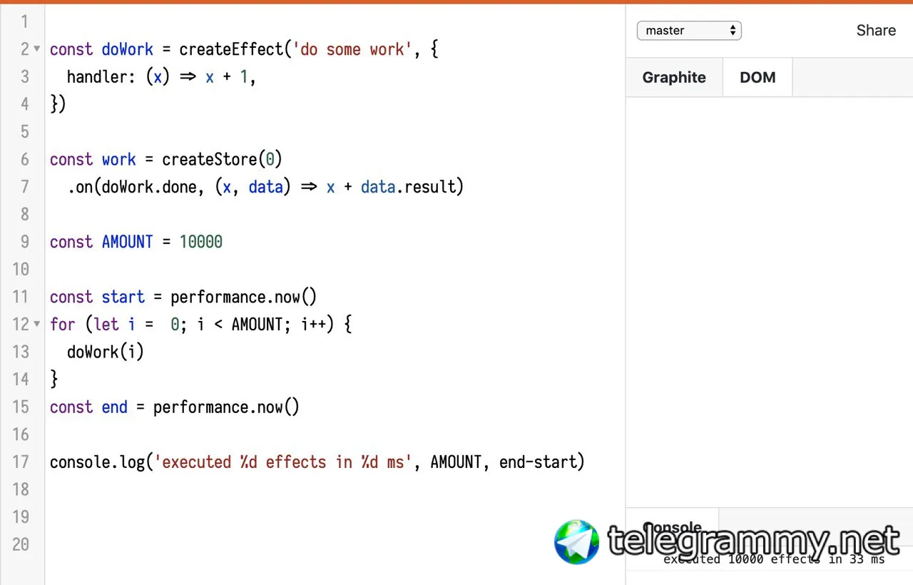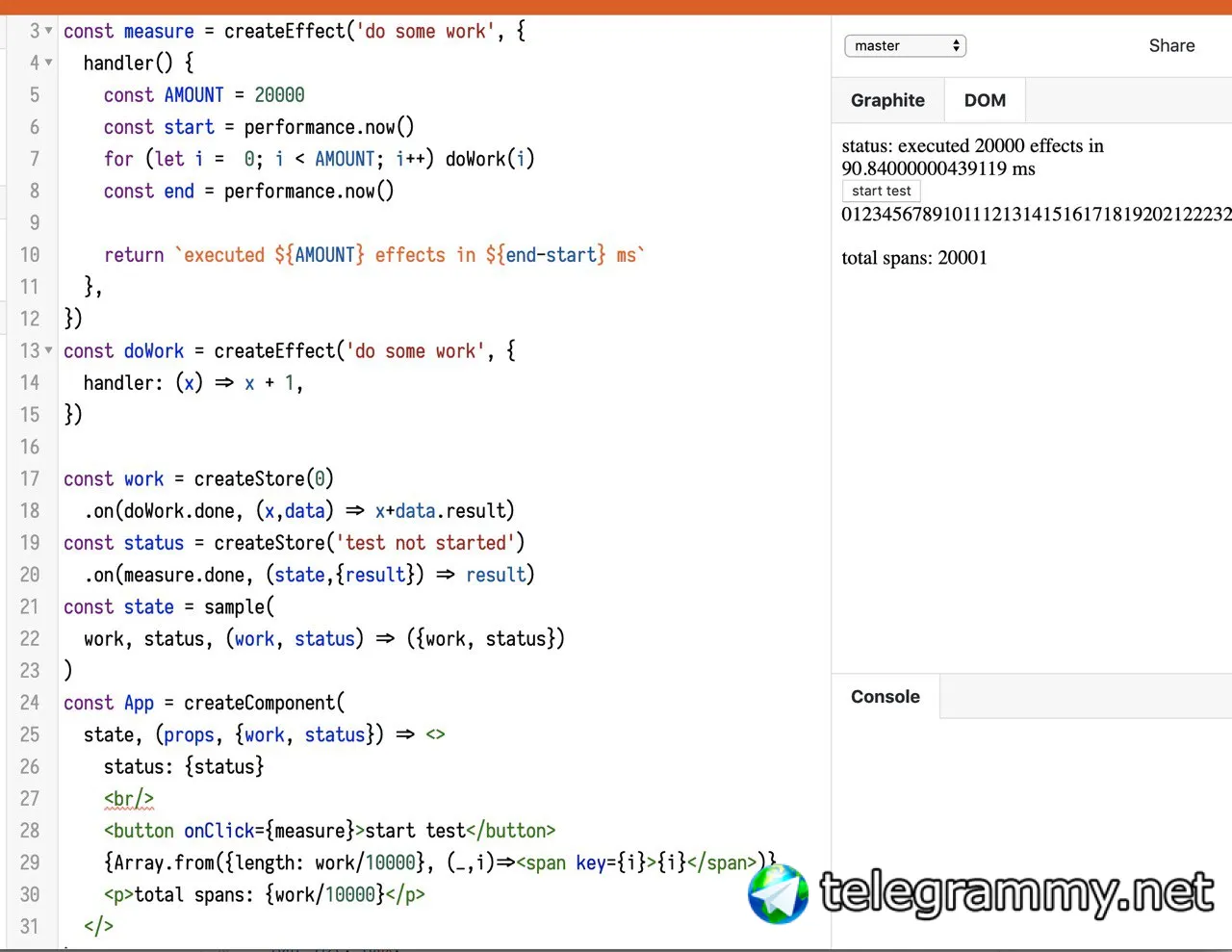 https://effector.now.sh/try?version=master&code=FASwtgDg9gTgLgAgN7AQgxjApgQzlgUQDcsA7OAGlQ2zywGU5Ysq1Nd8CAzLrdS6uzqNmAeQBGAKz4C0XWAHccMACasEcAJ4QsCbr37qtOvSXJUAvgi4woYBAHIsPGbAfB0UUgGdEKuwByUCq6ALwI-ugArmBkcAB04sGaoFwIABQAhP5gQSEAlBoAFrYKejC2MOkOpFBJKpoO+cDAAPStACRQPMAANliI6DikRDjeAFwIABIAKgCyADIAwsOj3gT9seQI4ZExcfEA5gMbWFtwAEKaAJIq1UOkTakZmQ9rhShsq2M7EVDR53iQk4mzi92+3ieXxGY3iIBUvwcD3caByeSw8RwEB0pBUSyKIF6dzeY2aFhanh8gy8+AAHohwiTvEcBksaVh6dUAEwqJ4eLy+BAAMQASgBBOYEAD69GuAC0CL8AIwABjVCFaCAAbCr+VSML1-gBrSb6GQAHmGmgoCCtAD5fsDCC5+PdDegjQ4bZ8EEVhip+jBJulCqEHaQsGUAAq2MAgbxYdIwbw7B0JuAzcBYKBROBJ7w20US6WyhX5fKWZqUwXod1GkQQX7yGBKVTpH02OyTWvG+L+CNGKDduuVikCxD0JYiggEAJSgDq1wAIjMpr8dbrqxOpzO51MCNcAOKzX4AFgAHLq9YLxUvrgBVejK1UtfqIW8P+gypZihaK8JKte75inej7fr+0pzNcATKkBCAfmBk4QVKcxigAGsq8QAKxjvqACK95igEMzXDMACavxcjhcFeJmHqmmYcCWqQmgOoytCcIxIbAM2rZ3EgnZgMOvb9iwGhDggtEgB6FjNDRpBzDmCaKSQjocYQXFVuOkkKUpWBLlACikGpHAaWCWn6l4ilRAm96NuxpnEOZuGCrROboEUjDKAyNCOZp8kzO5RQqWEvl0E55DcXB3ggKQhz9IFUQeV58C-G5SWeXA3nxFwhL4FUYQOj6IBpOkGJMBlWDMv0cVwEUOyhABhTYHAUQwMZWDALJ0WxfFWCJR5IVpaQA3BVAJA5XlWAFamyDUCVGTlUFVXxDVhx1Q1TUIC1bUdV1clbjp86xf4CgilVIAAF6hU6EV5hZgreDoWAIg5whMNg6RKs0aDxF46RWXpBlGTaIazVyP0IH9pAA7pNlYHZoOhg631wWAQOGcZb34CIn1cDgvQJpD0Ow9ZCbA6QSOzXAMBRFgxP-YD8OIxkyPWATRMuYgxxwPQ7BkBh4Rg2GGQKCdhlwqQEYwMdKgbQAtAgk7TrOC7LquhQAFQICq2FwTzfPYGQFFC2z6Ri7iEuxdLUxYCAhxFIgivK7uUr7kesxazretwdEyawILYU4x9iYW6dkvS7LCtKzuquLiuUwMzDTPKeNYnpLS3q1iAcRobJs3Z7nCCKwb-OkGhIZJ+kMVxQlQUpZQGSZwg9OzUtlXeAA2iqAC68QQDgxwYSXAyG1gAuV9QJM131o0haDzetyL7ceVV3d9wPQ-FwgpdG+Xk+HX73iwCbQcMCH5viwoEfTbb9uO9vLuq+7x4zFXKdYPPGTWsghfkGR+cRZ-zgBREevMy5kUnr9f6M864ZQbqDH+S8HQryKGvXu-dB5YFATvUeECoFQxgb1OBg006IJtMglu8QKqry7hgze2Dt673HqQSB5YWiwP6vXLK8B4hKDgB5Mqbd+7YEYkuZwOAoi9Hus0Thc8058LwIIwqVCICiLiOI-GUiZEtC8MdS2Z0LrXUUQIoo6RhZFWoO0J+c546rl+GHK2UtppRyKAAbisa0GxbsDyvwcVfG+MA74OzgB4wQEI+Hwg2uEbxdipjhJhMyNB98fLeJfrMFo0I1jxF8Jofo-coAxTgCALwiIcDiGPr0XMWAUQYAibk-J-QuA+QAAYdCQMwie+QLAQFpC0hJ2SGlLXsggNpHS8F7zYT0vp+0+gDAQL0XpczECLJSG+BAA94DSX6B4dSuMsASGkK6JAT1x5qAQOjeGFMbRHwDjctqx8YAAPyCYwR1ApIenUO2U5L0bSXPJpje5-sYBoSBY855s0fRoAWlkf5+lMYfGoGgNACEvxIT-AgAA1ELVF4E-woXQtvXF6KCBe11iqLkSKEBWCwITXQULkXEp-Bi+WOKQKfjxYqRWTLkJQQCGS+IFKqXkipTyjF4Q5h4CKPEOMMMxUEBtPKglaE5LIo1JqIUOAQiSVzMUXQvRYpVQQN4Q0CheiaAQOIC1KgYA4AtocW020ZDDD6pJEgMA9Ut3ICAbAdTElUspHSBIuVei9EYHk0KDgYCHHEDgdIKoKAJqTYKrC+RalsHZPSSaobzqugTTrG5maEhMkiXLIohbyAcmLRE5JITVXIubBkdZIBfj5pqr8TZxTawrTWnVNxCAW3mgWWQftIBMWYsRWqtAnbtmhRnd2ruIAe5UrQIs2kHbvKzoKUUkppB4i0hXQsiAFrwjzvydAHdXh4gpEPe0BAogeDpk9S6-o4kEBGnHo2OqugnqxR3lAXqh6z0YhfbobFGzN3dpyc9BE2sfkqEyVOu9QooChsMhcvSCAxYbWPrEBZg8gOQfyd4AkzT91YqFrckF29gM5NIwkWkXtaPwYQHBmDhGtlQZIyVBIFrwPpCozg5j9Hr1MaIxiFjbGzmIbVXesU2JzUbMKSAYpXgONdvPcp1Te712hEPdO8TdGePkcxfphAkq6pAkKekFtmKIOcfyaBr26RaOwHECp1j8F2WIWZaS9TW6L0qd3denYZnhPGb42Ziz0qa42axfZjTIHa6t21i5wzbmPPa3lfW2TmoFjgA80wY1ZdLU5lxN4fzUHAvafIxKqVMqcC0nSFF+rsq0sOYxNV4LzdYnq0TuoKdBbD2QzVbRrrV6T3mda415rg20DRZlbFdriXt1BYmzaNJvjPYDanQm4bMnkXMaumBoWtGeEG2OzRwzMVroCpVNRQbd7rhpAUDU31eBPXnfmTdsST6cAIAjGULwnVBswoW7YKIuJltbp+6GOrlmIdQ7O8oC7t3J1zeR9G0el2ALxfB-6OwYNtYAHZD0isG4GqtiQsCHFilGKV3EKdFuzWGrQr7T2GZDb0NkhoYCHsp1m3wtgP3hvZwlrdXOeewH58zg1EZXEbo6zk47MvK1ZvRiQQK6Q102lWSN5FAuEhy64dDqrWnus2jG+bib+uM1q4SELqAH7GdTsN5iGA6BZsY8M+NnTO3Rs++t3u60YXruXc1Fyf3yK9tzam5ZqM1xPOR7MzTOmUfbcYGZ1zl3aByS56oAdbSwGUzhE7sutGelA6OOvtbFxUT6rO1jrYvrFf4an2r4E4JD9G8qz3FtmYLQ9iAi1SoO6+XfBkGmtUOFGuak2g-l-fGdLmhD4OCPsf8Z8DS2n3pU6jx59wwBSDdmy-gCr-IJiFQo-GLj631PhwcKogQC9DpMmCMIA2iX5zEt6+b+b8n1UA4DQkUL4N5C-ulMlDwo3F-vTB4BEr-nELfgAdUMAbPuASNEFIvhzLAR3ggeQEgdvlGkYnPkdFfOdD9p-tgXJI2trvMi2uECqKOggEOgRERCRORKOuOujodMBr8Ayr7pMEgLSJMHCqCggJoCIXpAAjttxs0oIcIRhvDGIRIYoQmNIVSj9pMEqDtqBpMDHsivBnoYKkqHjvVrapbGAETt7CqKeDtl9rzMdloTtpLqhrAJMC0gAMTtLmL44WFWEqi0ing2HBHxYBE4DhERGFAAA+OsLyTAjAMAvUX0Wo3SLSO2GWcAkwqKnmusWE8W2R2suRnmvhOQIY6g5O4uC6-cNkZiwGZIuipA+ip05Bx23EPYHo3EQAA